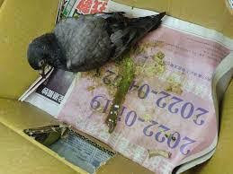 Figure 4: Young pigeon showing signs of sickness (lethargy and distress)