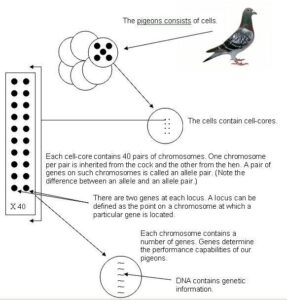 These articles on genetics focus on racing pigeons. Consequently, definitions, processes, and consequences are discussed in terms of racing pigeons. This does not mean that other living organisms (plants, animals, human beings) are excluded from them. In fact, most research has been done on living organisms other than racing pigeons. The reason for this ‘closed system’ approach is to maintain simplicity and relevance. After all, we are interested in racing pigeons and how we can use genetics to breed top-class racers.